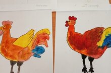Рәсем шөгелендә балалар йорт хайваннары турында белемнәрен ныгыттылар, табышмакларга җаваплар таптылар. Краска ярдәмендә әтәч рәсеме ясап буядылар.