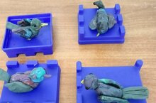 Занятие лепки "Птичка". Цели: Продолжать учить делить пластилин на кусочки, учить отмечать разнообразие получившихся изображений; развивать мелкую моторику рук, самостоятельность;воспитать желание помогать пицам