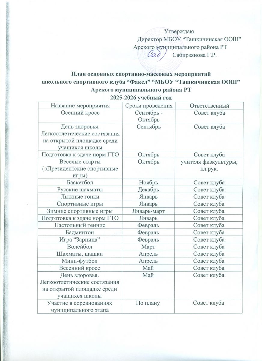 План основных спортивно-массовых мероприятий (2025-2026)