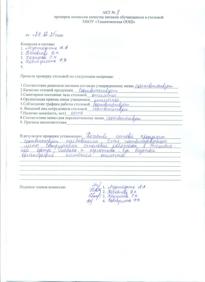 Акты проверки школьной столовой 2024-2025