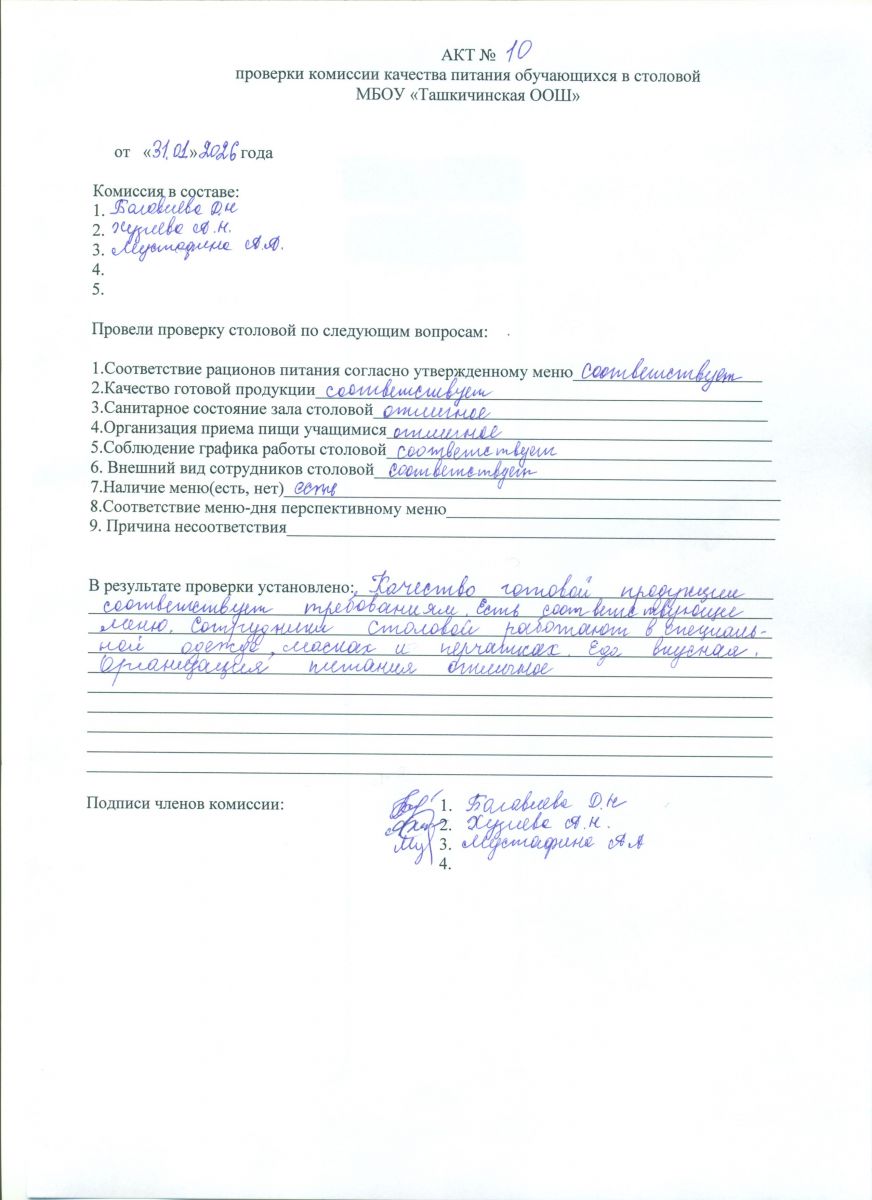Акты проверки школьной столовой 2025-2026