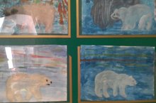Цель: Научить детей изображать белого медведя с опорой на иллюстрацию. Научить рисовать северное сияние. Формировать умение изображать животных в движении, точно передавая особенности внешнего вида и пропорции. Познакомить детей с явлением природы Севера - полярным сиянием, учить различать и называть животных Севера, познакомить с их внешним видом, характерными особенностями и повадками белого медведя. Воспитывать бережное отношение к природе и любовь к животным.