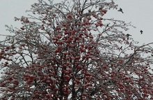 Вот и прихватило ягоды рябины первым морозцем, они стали вкусными и мягкими. Любят рябину звери и птицы. Медведь, если найдет ее в лесу, увешанную гроздьями ягод, ловко наклонит гибкое дерево и с удовольствием полакомится ее плодами; нравятся ягоды рябины и лесным великанам — лосям. Они дотягиваются до самой верхушки дерева, с аппетитом поедают плоды и ветки. Упавшие на землю ягоды подбирают мыши-полевки, ежики, бурундуки и белочки. В предзимние ноябрьские дни прилетают стайки снегирей и свиристелей. Они облепляют рябину и склевывают ее сочные сладкие ягоды. Клюют птицы быстро, роняя очень много ягод на землю, затем улетают дальше. Рябина спасает от голода многих птиц.