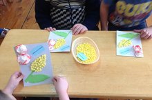 Озакламый безгә әниләребез кунакка киләчәк. Аларга бүләккә матур чәчәкләр ясадык.