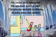 -не приближаться к крышам зданий, с которых возможен сход снега, и не позволять находиться в таких местах детям;