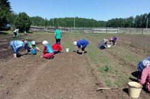 Бакчада эш дәвам итә: вакытында чүбен утап, суын сибеп торсаң гына бакча матур буласын укучылар бик яхшы анлыйлар. Шуна да тырышып, матур һәм мул уңыш булсын, дип эшлиләр.