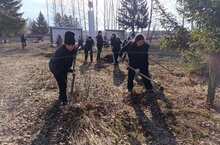 Һәйкәл территориясен яфраклардан арындырдык.