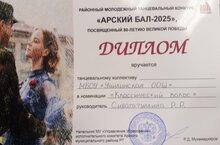 7 сыйныф укучылары Сабирова Азалия һәм Акмалиев Эмиль Бөек Җиңүнең 80 еллыгына багышланган "Арча балы" нда катнаштылар һәм "Классик вальс" номинациясенә ия булдылар. Котлыйбыз, укучылар!
