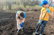 В рамках экологического двухмесячника дети посадили саженцы деревьев на своих участках. -