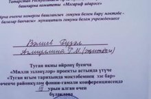 Туган якны өйрәнү максатыннан мәгариф идарәсе тарафыннан "Милли эзләнүләр" проекты астында үткәрелгән "Туган ягым тарихында мәктәбемнең эзе бар" 3 нче районкүләм фәнни - гамәли конференциясендә укучыбыз Р. Вәлиев (җитәкчесе Р. М. Аглиуллина) 3 нче урын алды. Котлыйбыз!