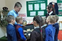 Учащиеся вспомнили о крупнейших сражениях той войны, средствами наглядности попытались представить себе быт простого солдата , поговорили о великой победе советского народа над фашистской Германией. А помог нам в этом старый, потрёпанный «чемодан Памяти», сохранивший немало скорбных воспоминаний. Как много он может рассказать о своем хозяине, о далеких временах и памятных датах. Каждый предмет, хранящийся в чемодане, имеет свою уникальную историю. Ребята с большим интересом рассматривали уникальные экспонаты «чемодана Памяти». -