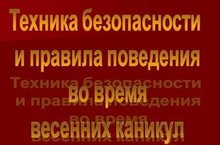 Техника безопасности и правила поведения во время весенних каникул 22.03.2019