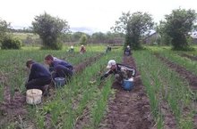 Мәктәп яны бакчасында эш атналыгы дәвам итә. Укучылар түтәлләрнең чүпләрен утыйлар