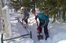 Бүген мәктәп укучылары Бөек Ватан сугышында һәлак булганнар истәлегенә куелган һәйкәл тирәсен кардан чистарттылар.