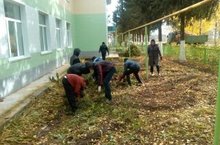 Мәктәп яны территориясен чистарту эшләре дәвам итә.