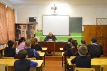 "Наркотикларсыз тормыш!" айлыгы кысаларында мәктәптә план нигезендә бик күп чаралар үткәрелә: тәрбия дәресләрендә диспутлар, әңгәмәләр, рәсем конкурслары, викториналар һ.б. Шуларның берсендә участок полиция вәкиле Р.Г.Рахимҗанов белән әңгәмә.