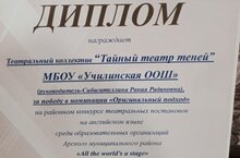 Подведены итоги районного конкурса театральных постановок на английском языке "All the world's a stage". Наш школьный коллектив "Тайный театр теней" стал победителем в номинации"Оригинальный подход"Молодцы!
