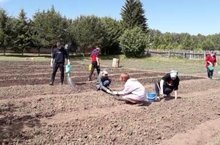 Мәктәп бакчасында эш дәвам итә. Укытучылар, хезмәткәрләр белән берлектә укучылар да тырышып эшлиләр. Хезмәт чиреге башланды бит...