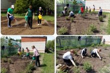 Яз җитү белән мәктәп яны участогында эш кайный башлый. Җирне эшкәрттек, түтәлләр ясап, яшелчәләр, чәчәкләр утырттык.