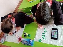 "Туган телләр һәм халыклар бердәмлеге елы" уңаеннан төзеләчәк " Милли бизәкләр" кургәзмәсенә укучыларыбыз салкын батик ысулы белән халкыбызның милли җәуһәрләрен тукымага төшерәләр. -