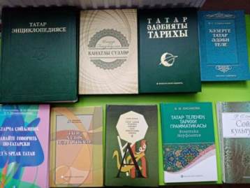 "Туган телләр һәм халыклар бердәмлеге елы" на багышланган кургәзмәдә туган телебез, әдәбият тарихы, тел турында кызыклы хезмәтләр тупланган китаплар, татар телендә чыгучы газета, журналлар белән танышырга мөмкин. -