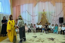 В старшей группе прошел "Осенний бал". К детям в гости пришла красавица Осень и Пугало. Осень детям принесла с собой в корзинке яблочки и листья-загадки. Дети на празднике пели, танцевали, рассказывали стихи, участвовали в играх вместе с Пугало.