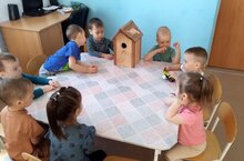 Сегодня с детьми говорили о птицах, вспоминали их особенности, о том, что они нуждаются в нашей защите. Теме птиц посвятили игры, посмотрели презентацию. Во время прогулки повесили скворечники, изготовленные родителями.