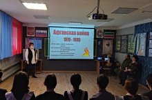 Война в Афганистане - одна из самых трагических страниц летописи советской эпохи. Она навсегда останется в памяти не только ветеранов войны, но и всех последующих поколений. С целью воспитания чувства патриотизма, любви к Родине, уважения к прошлому страны, братского отношения к другим народам юнармейцы школы (обучающиеся 8а класса, классный руководитель Л.И.Нигаметзянова) провели Урок мужества, посвященный Дню вывода Советских войск из Афганистана. На Уроке ребята узнали об Афганской войне, её последствиях. Юнармейцы подготовили и выступили с сообщениями о подвиге солдат, прочитали стихи. В ходе Урока были использованы документальные видеоматериалы. В завершении мероприятия почтили минутой молчания память погибших воинов-интернационалистов.