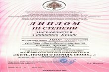 Подведены итоги VIII республиканской конференции исследовательских краеведческих работ «Жить, помня о корнях своих...», посвященной 75-летию со дня Победы в ВОВ и 100-летию образования ТАССР. В заочном конкурсе конференции в номинации детских рисунков «Нет в мире краше Родины нашей» принял участие и обучающийся нашей школы Гатиятов Б. (5 класс, руководитель И.М.Шарафеев). По итогам конкурса он удостоился Диплома 3 степени. Поздравляем Гатиятова Б. с этим достижением и желаем ему успехов в будущем!