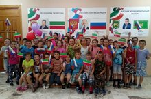 Сегодня состоялось празднование Дня России. Вожатые ознакомили с историей праздника. Ребята узнали много нового и интересного о государственных символах России: гербе, флаге и гимне. Ребята с воодушевлением пели песни, читали стихи о Родине. Проявили творческие способности при составлении аппликации «Россия- Родина моя!» День России — праздник свободы, мира и доброго согласия всех людей на основе закона и справедливости.