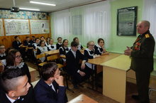 «Есть такая профессия - Родину защищать» под таким девизом в школе прошла встреча обучающихся 8, 9 классов с прапорщиком запаса Р.Р.Заппаровым. Он рассказал ребятам о том, как он служил, почему выбрал именно такую профессию, а также поделился воспоминаниями и интересными случаями о своей нелегкой службе. В ходе встречи Раят Равилович ответил на вопросы обучающихся о боевых действиях, о друзьях, с которыми он служил, о мужестве и стойкости наших солдат, о ценностях современной жизни, о значении военного образования в наше время. В завершении Урока мужества Раят Равилович посоветовал старшеклассникам не бояться армейских трудностей, пожелал ребятам уже в школе готовить себя к службе в армии.