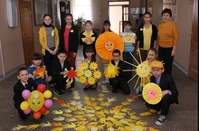 1 апреля в нашей школе был объявлен днем смеха и днем солнышка. Все учащиеся и учителя пришли в школу в одежде жёлтого, оранжевого и красного цветов!Каждый класс приготовил поделку - солнышко, каждый ученик из желтой бумаги вырезал свою ладошку и написал на ней пожелание. А сколько добрых и солнечных пожеланий написали на ней учащиеся. На первоапрельской линейке каждый класс зачитывал свое поздравление. Затем из приготовленных ладошек было создано большое школьное солнышко. На переменах работали развлекательные аттракционы.