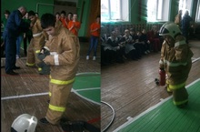 Были проведены среди 7-х классов подвижные игры с применением боевой одежды пожарного