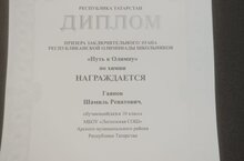 С 12 по 14 января на базе оздоровительно-образовательного комплекса «Дуслык» республиканского олимпиадного центра прошел заключительный этап республиканской олимпиады «Путь к Олимпу» по химии для обучающихся 8-11 классов общеобразовательных организаций РТ. В олимпиаде приняли участие 120 обучающихся из 36 муниципальных районов. В олимпиаде принял участие и обучающийся 10 класса нашей школы Гаянов Ш. Заключительный этап республиканской олимпиады «Путь у Олимпу» по химии проходил в один тур, где ребята выполняли письменные задания по различным тематикам учебного предмета «Химия». По итогам олимпиады Шамиль стал призером. Поздравляем! Выражаем благодарность учителю химии Курбановой С.А. за подготовку призера олимпиады. Спасибо Вам, за Ваш труд, за Ваш профессионализм.