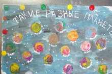Цель: расширить знания о космосе, планетах , развитие мелкой моторики рук, познакомить со смешиванием цветов пластилина, развитие чувства композиции и формы, учить детей работать в коллективе.