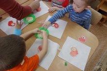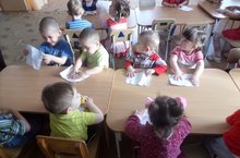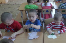 Цель: Научить детей работать с кисточкой и клеем. Воспитать эстетический вкус и аккуратность.