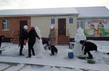 Родители наших воспитанников помогли нам создать на участке детского сада настоящую зимнюю сказку. Работа кипела несмотря на пронизывающий ветер и холод. На радость детям из снега выросли добрый Дед Мороз и красавица Снегурочка, символ наступающего года - веселая обезьянка и другие сказочные герои.