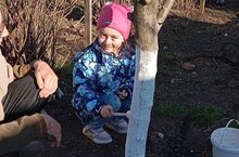 Побелка стволов деревьев воспитанниками 30.04.2025