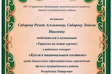 "Тарихлы иң яхшы курчак" номинациясендә безнең балалар бакчасы тәрбиячеләре җиңүче булып танылды 20.11.2019