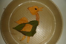 Балалар белән торле зурлыктагы, формадагы яфраклардан торле җәнлекләр, кошлар ябыштыру.Эшчәнлек барышында балаларныың фантазиясен баету, кләй белән сак,чиста-похтә эшли белү алымнарын камилләштерү .