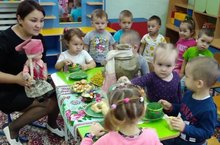 Бала үзен кеше итеп тойсын өчен, анда милли горурлык, туган телгә мәхәббәт хисе тәрбияләргә кирәк. Балаларны тәрбияләүдә халкыбызның борынгы гореф-гадәтләрен, йолаларын һәм бәйрәмнәрен өйрәтү мөһим чараларның берсе булып тора.Безнең халкыбыз эле-электән үзенең кунакчыллыгы белән аерылып торган . 1 кечкенәләр төркеменә йөрүче балалар сөйләм үсеше шөгылендә кунак каршы алуның кагыйдәләре турында сөйләште . Балалар читтән генә күзәтеп калмыйча, үзләре кунак сыйлау серләренә төшенделәр.