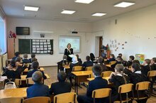 29 нчы сентябрьдә мәктәбебезгә ГАИ хезмәткәре 2-4 нче сыйныф укучылары белән очрашуга килде. Укучылар очрашуга ныклап эзерләнделәр: юл йөрү кагыйдәләренә багышланган рәсемнәр ясадылар, шигырьләр өйрәнделәр. ГАИ хезмәткәре, Ринат Рафис улы, балаларга юл йөрү кагыйдәләрен ни өчен үтәргә кирәклегенә турында сөйләде.. Эл.самокатларда, велосипедларда тиешле урыннарда гына йөрү кирәклеген әйтеп китте, укытучыларның, укучыларның сорауларына җавап бирде. Укучылар юл йөрү кагыйдәләрен тагын бер кат искә төшереп үттеләр. Инспектор шулай ук өлкән сыйныф укучыларының линейкаларында да булырга да өлгерде.