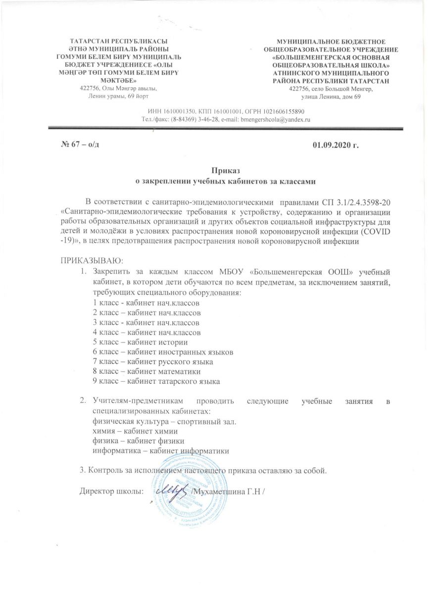 Муниципальное бюджетное общеобразовательное учреждение «Большеменгерская основная общеобразовательная школа» Атнинского муниципального района Республики Татарстан