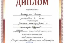 Казан дәүләт аграр университеты тарафыннан оештырылган фәнни гамәли конференциядә катнашып 7 нче сыныф укучысы Хамидуллин Инсаф 2 нче урын яулады. Укытучысы Паутова Г.Г.Котлыйбыз, молодцы!