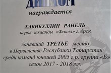 Арчада 2017-2018 нче елгы сезонның хоккей буенча "Татарстан беренчелегенә" 2005 нче елгы яшүсмерләр арасындагы ярышта мәктәбебезнең 5 нче сыйныф укучысы, Арчаның хоккей буенча "Факел" командасы уенчысы Хәбибуллин Ранель 3 нче урынга лаек булды. Молодец, Раниль!