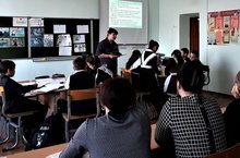 17 нче апрель көнне Гайнетдинова Алия Рөстәм кызы, 7 нче сыйныф укучылары белән "DVD frensy" дигән 8 нче модуль буенча инглиз теленнән ачык дәрес күрсәтте. Дәрестә укучыларның сөйләм телен баету, вакытны дөрес бүлеп, файдалы кинолар карарга өндәү максаты өстендә эш алып барылды. Укучылар өч группада эшләделәр. Аудирование, диалог һәм монолог төзеделәр. Укучылар белән индивидуаль эш эшләнде. Дәрес ФГОС таләпләренә туры килерлек, уңышлы булды.