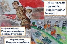 "Я слышал только о войне" республикакүләм рәсем конкурсында 5 сыйныф укучысы Гиниятуллин Ранил 3 урын (җит. Нәҗмиева Г.Д.), 4 сыйныф укучысы Мифтахова Г. (җит. Борһанова Р.Н.), 7 сыйныф укучысы Хакимҗанова А. (җит. Төхфәтуллина Ф.Р.) дипломант булдылар. 24.01.2015