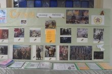 Сәнгать укытучысы Төхфәтуллина Ф.Р. "Сугыш - рәссамнар иҗатында" тематикасы буенча күргәзмә оештырды. Шулай ук, күргәзмәдә "Музыка времен Великой Отечественной войны", " Бөек Ватан сугышы чоры плакатлары", "Бөек Җиңүнең 70 еллыгы логотипы" турында мәгълүматлар тупланган папкалар да урнаштырылды. Тәнәфесләрдә сугыш турында татарча һәм русча җырлар даими тыңлана.