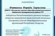 Башлангыч сыйныф укытучыларының республикакүләм видеодәресләр конкурсында Фатыйхова Ф.Х. 2 урынга лаек булды 04.01.2016