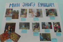 "Мин әнигә булышам" фотостендта укучылар әниләренә ничек ярдәм итүләре хакында яздылар.